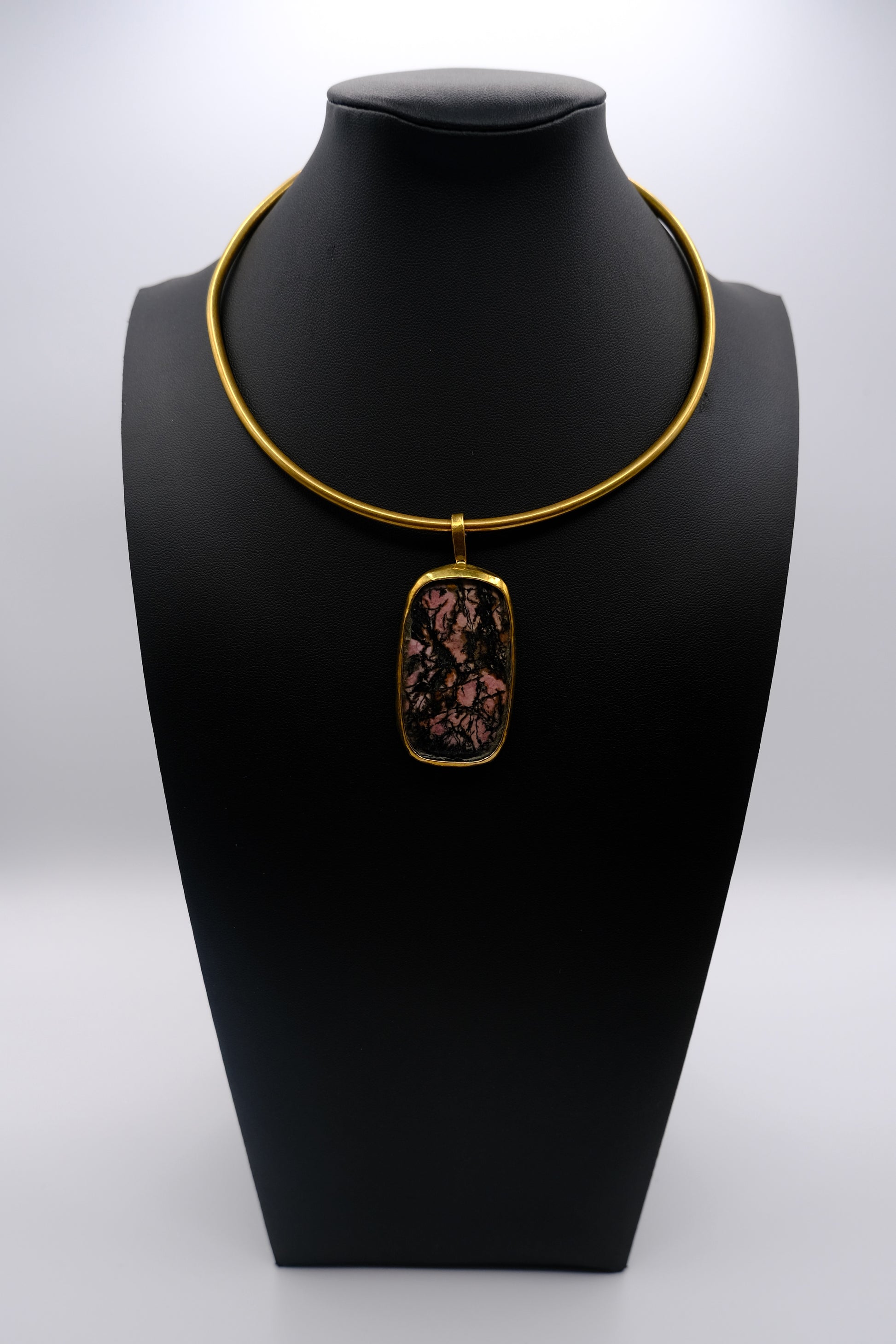 Celebrate your innate strength and compassion with the captivating Blush Earth Choker, meticulously handcrafted by talented artisans in Kenya. This striking brass choker highlights an exquisite Rhodonite gemstone, beautifully patterned with soft blush pink and earthy black hues. Known as a stone of compassion and emotional balance, Rhodonite gently supports heart-centered healing, fostering confidence and purpose. Its versatile, modern design combined with traditional craftsmanship makes it a statement piece of both style and spirit.